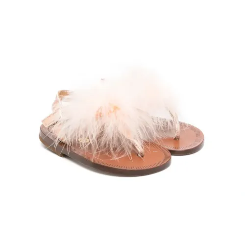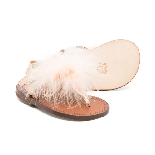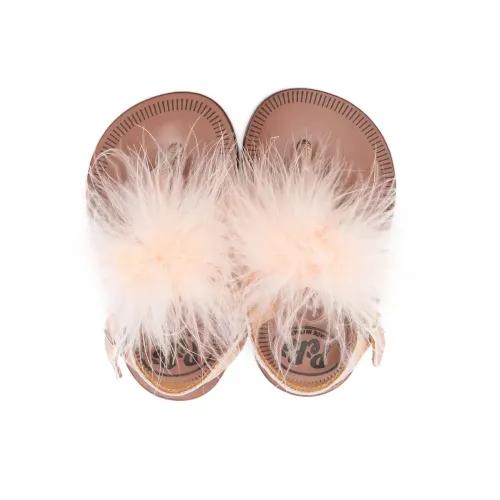 Сандалии с помпонами и Т-образным ремешком