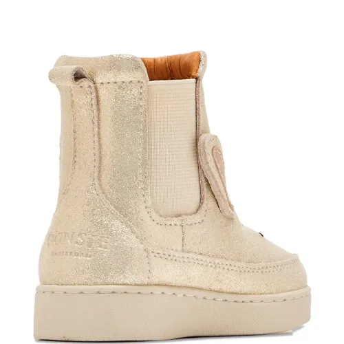 золотистый оттенок, заячьи ушки, выпуклый шов, эластичные боковые вставки, петля на заднике, круглый носок