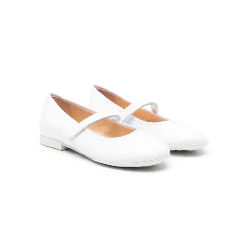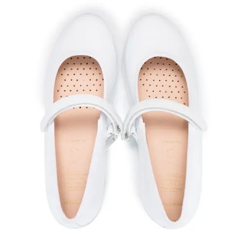 Тисненый логотип сбоку, отделка корсажной лентой, застежка на липучке спереди, кожаная стелька с логотипом и плоская резиновая подошва.