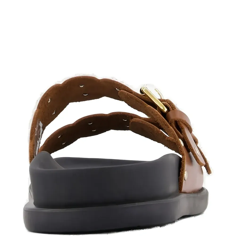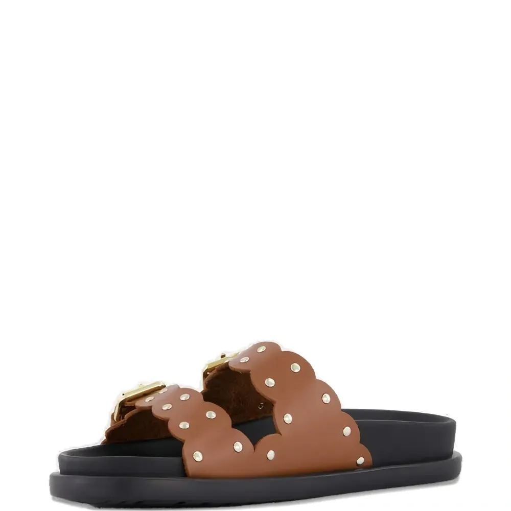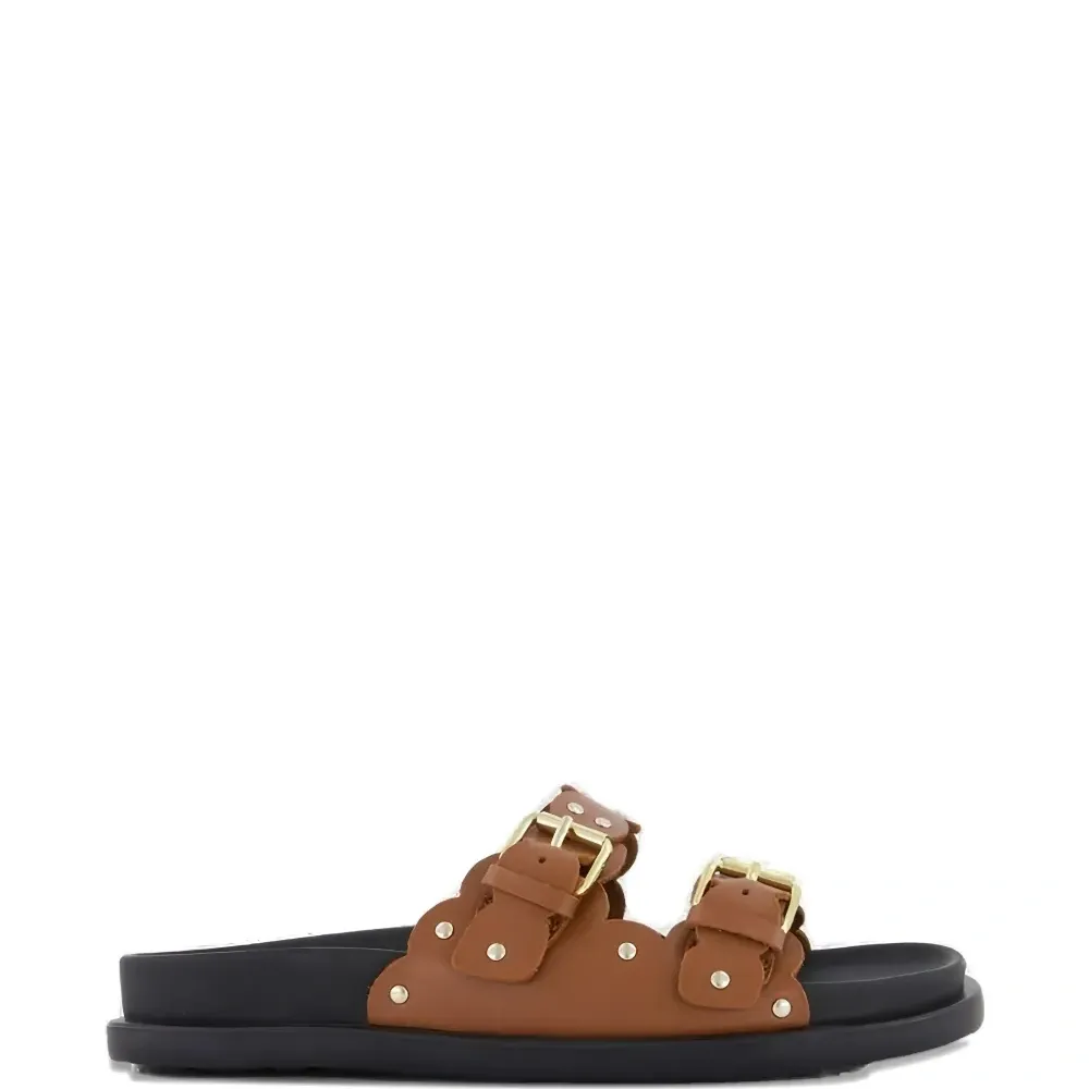 коричневый с заклёпками, застёжка-пряжка, фурнитура золотистого цвета