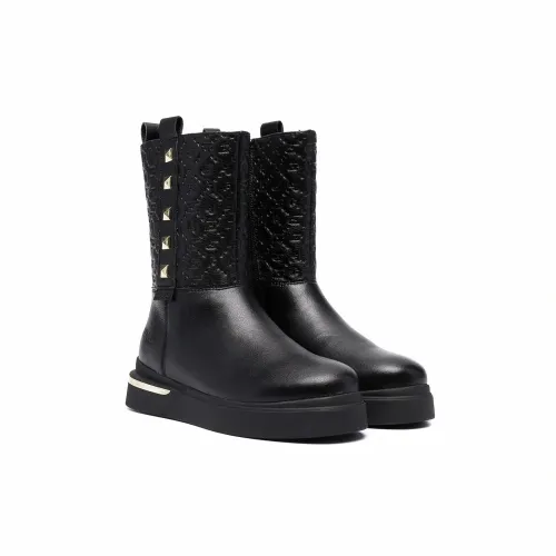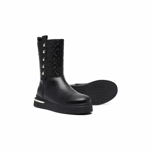 кожа черный длина ниже колена сплошной принт с логотипом серебристые заклепки закругленный носок модель без застежки петля для подтягивания сзади петля для подтягивания на язычке вставка с эффектом металлик на пятке плоская резиновая подошва