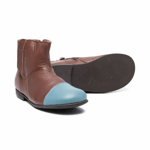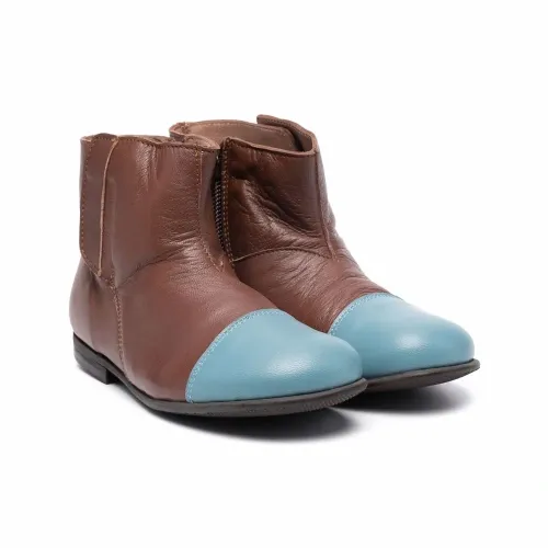 Стиль колор-блок, закругленный носок, длина по щиколотку и застежки на молнии сбоку.