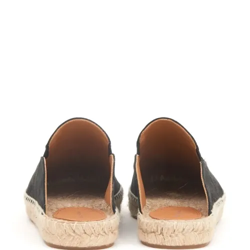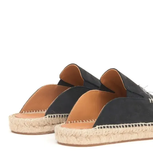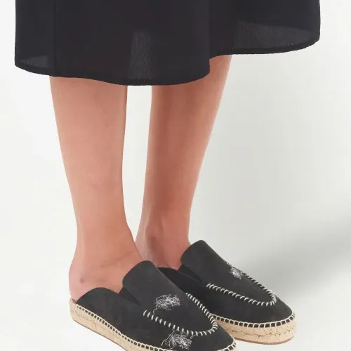 Черный, телячья кожа, декоративная строчка, джутовая подошва, закругленный носок и модель без застежки.
