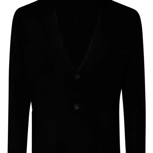 черный трикотажный кардиган с застежкой на пуговицы, накладными карманами, длинными рукавами и V-образным вырезом