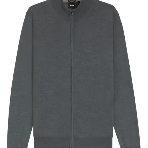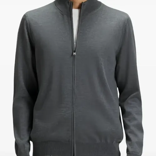 серый цвет, застёжка-молния, длинные рукава, круглый вырез, ребристый низ, ребристые манжеты