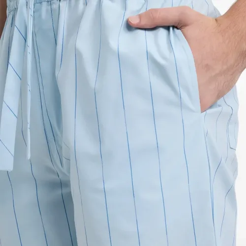 синий с узором в полоску, застёжка на завязке, эластичный пояс, задний карман, боковые карманы в швах