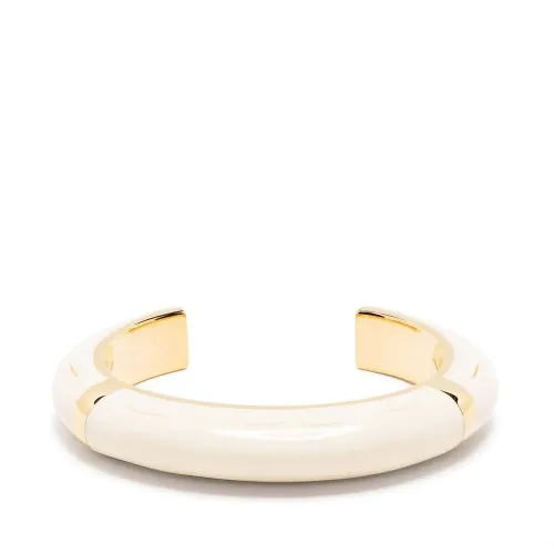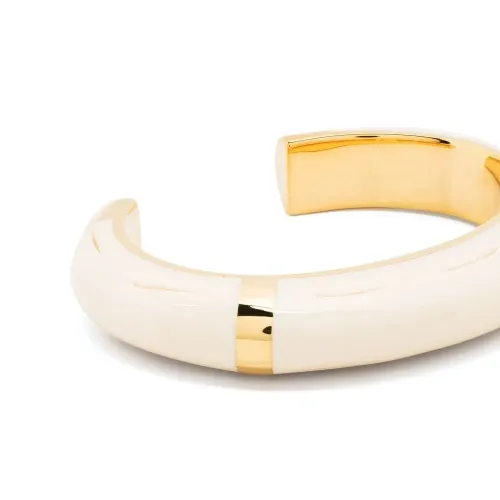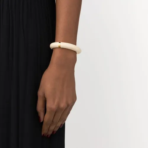 Цвет слоновой кости, позолоченная фурнитура, выгравированный логотип и двухцветный браслет.