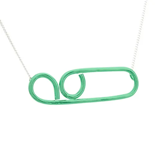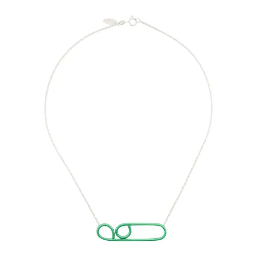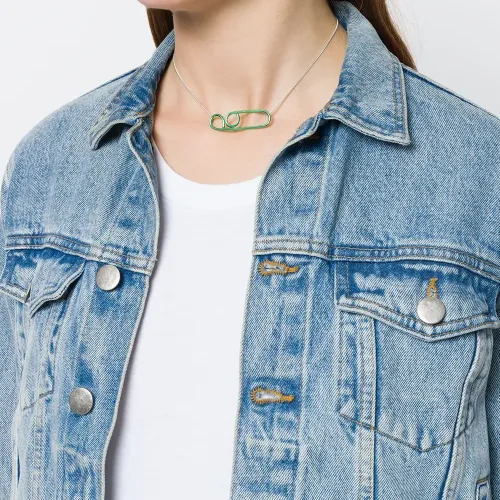Зеленое серебряное колье 'Technofossils' от Wouters & Hendrix. Деликатная цепочка, круглая застежка, зеленый вручную изогнутый кулон с противоаллергическим электрическим покрытием.
