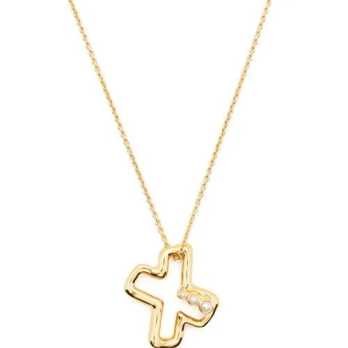 Золотистый, подвеска с буквой, декор из искусственного жемчуга, канатная цепь, регулируемая длина цепочки и застежка-карабин.