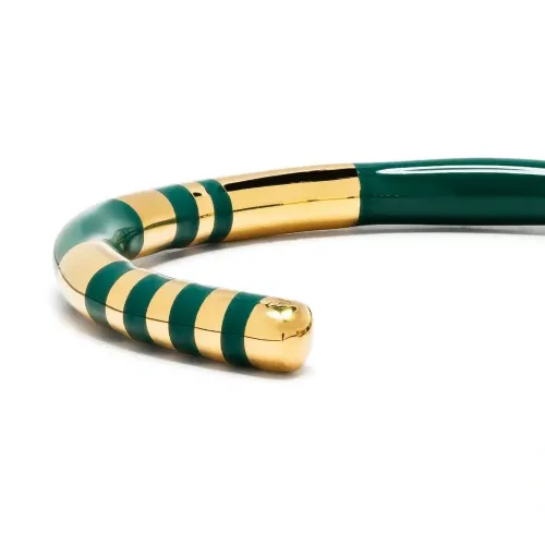 Глянцевая фактура, деталь из эмали и открытая спина.