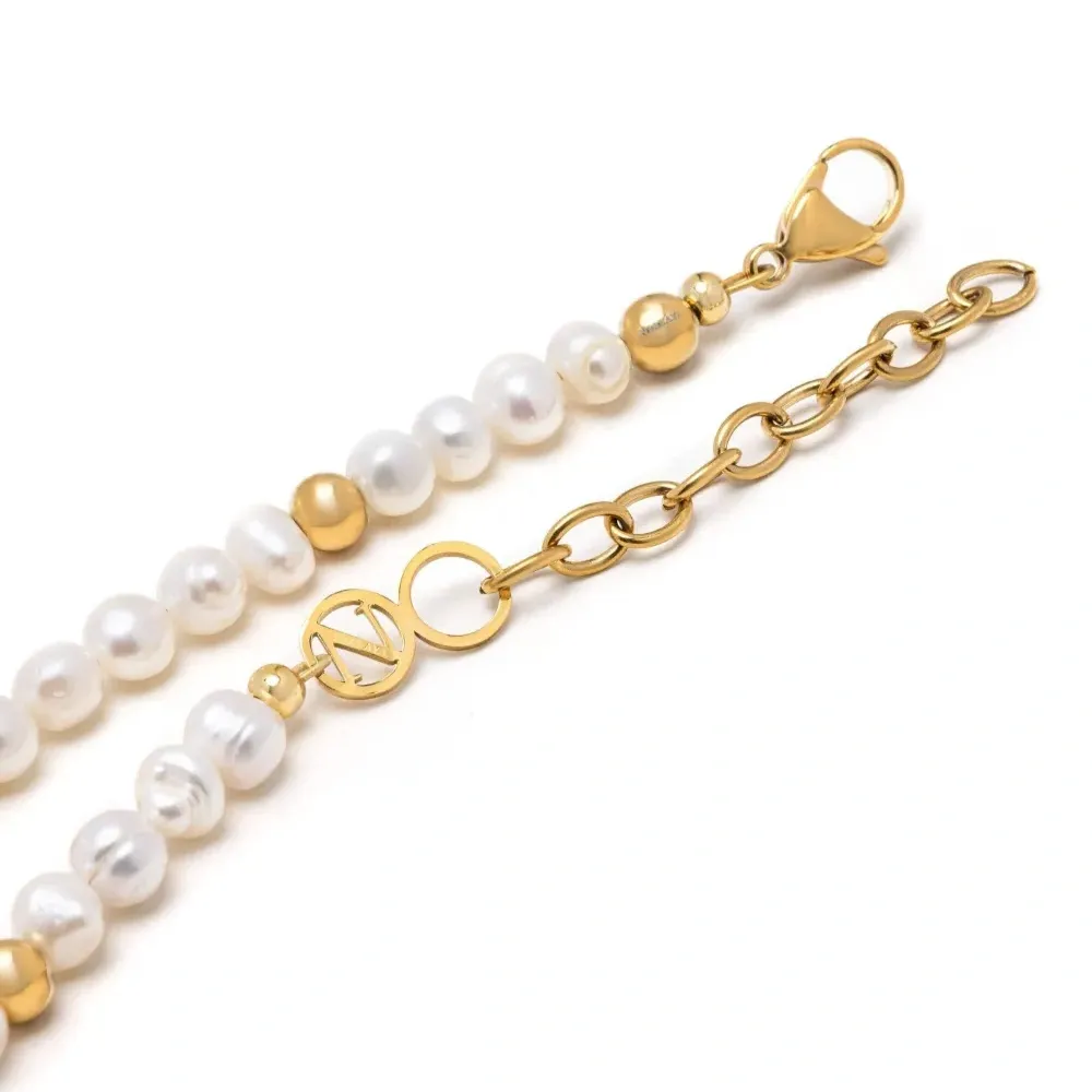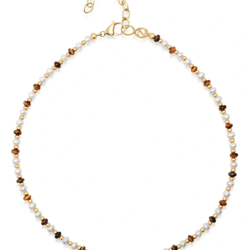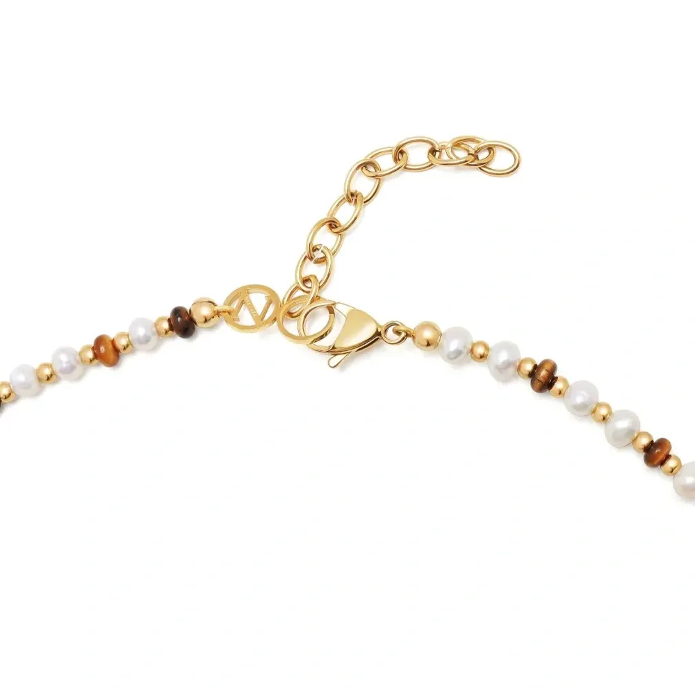 Речной жемчуг, Нержавеющая сталь, покрытая желтым золотом, Тигровый глаз, стекло