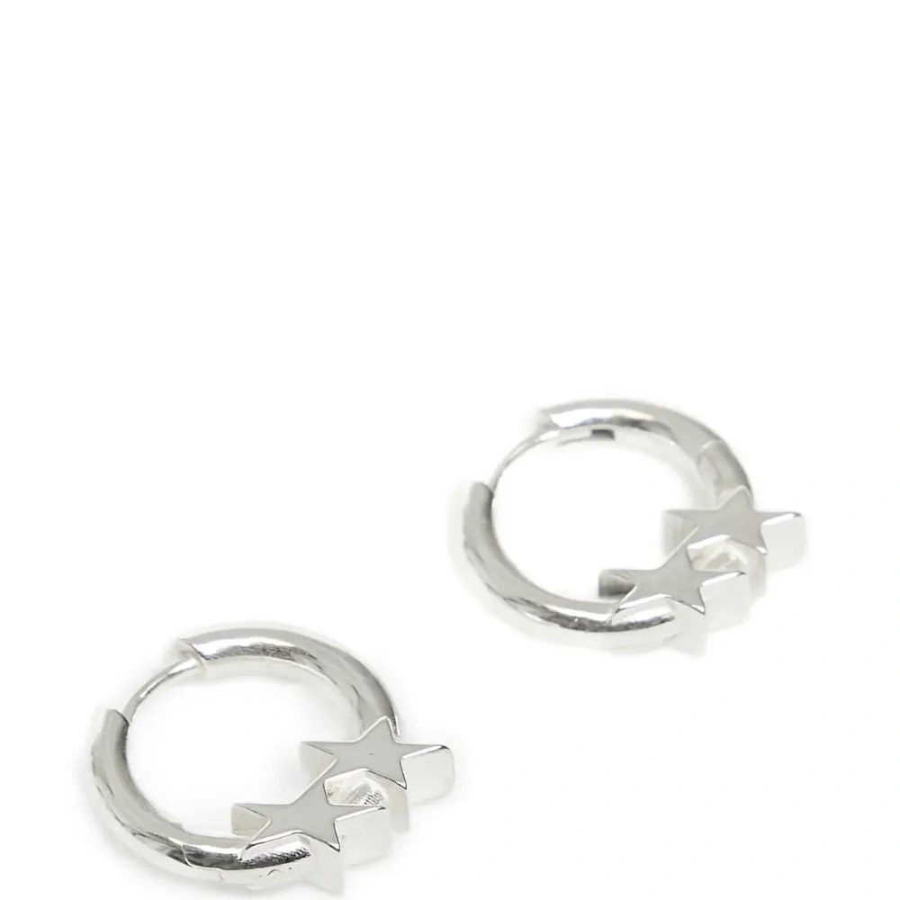 серебряные серьги-кольца с деталями в виде звезд для проколотых ушей. Эти серьги продаются в паре.