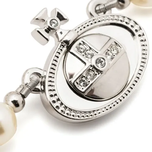 Серебристая фурнитура, искусственный жемчуг, декор из кристаллов, знаковый декор Orb и серьги-подвески. . Узнать больше о том, какие товары получают отметку «Ответственный выбор», можно из материала «Как мы оцениваем экологичность и этичность».