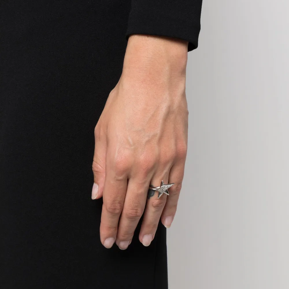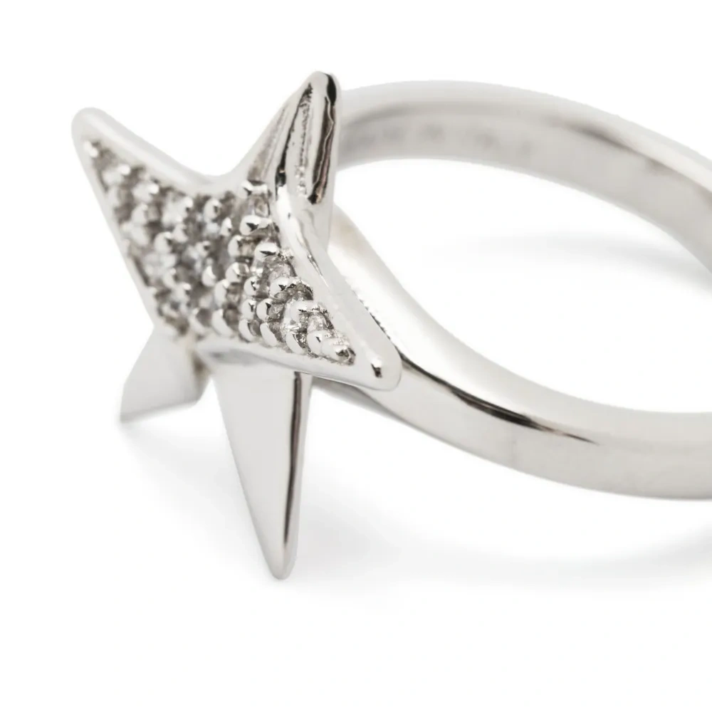 Серебристый, стекло, заклепки в форме звезд и выгравированный логотип.