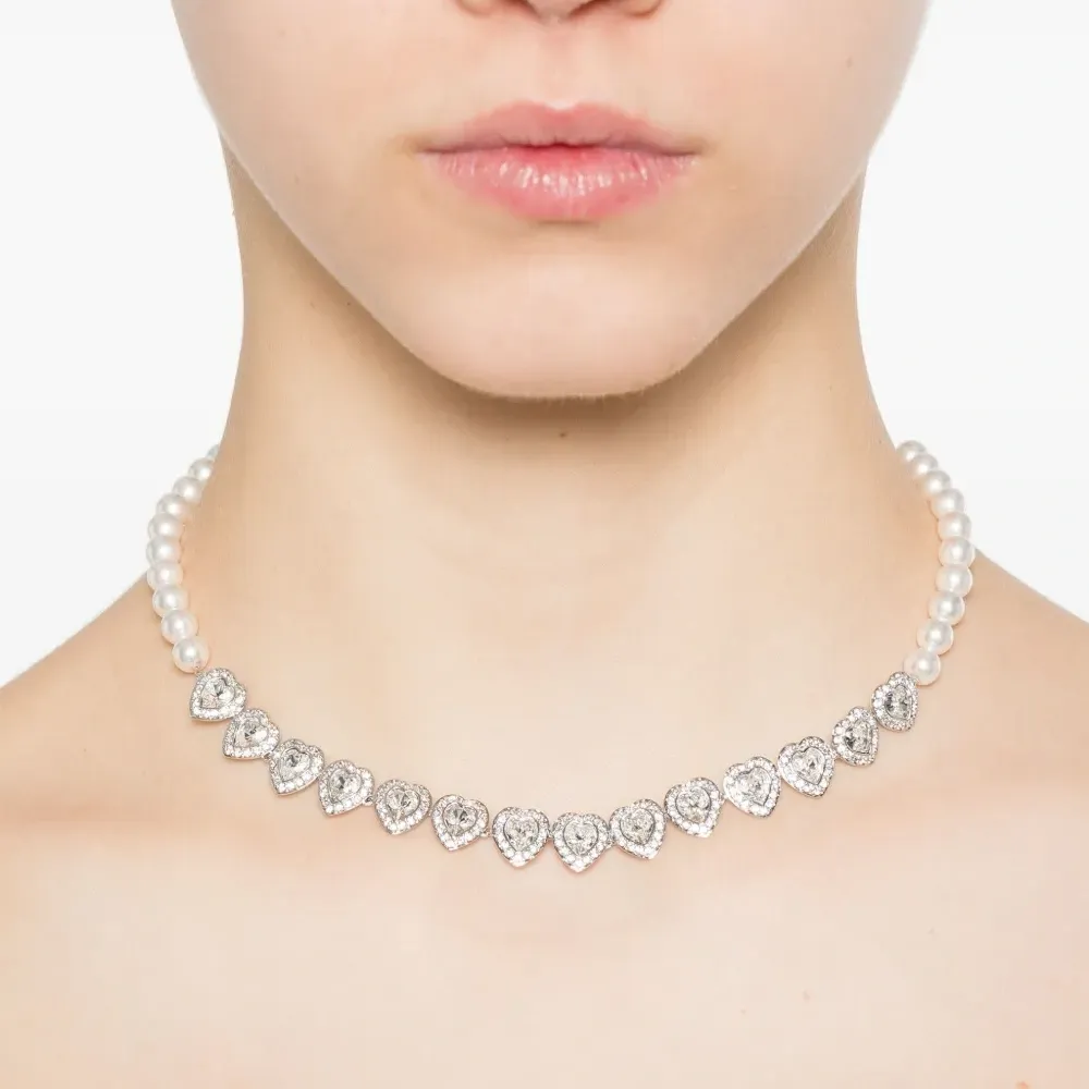 Искусственный жемчуг, Латунь с родиевым покрытием, Кристаллы Swarovski