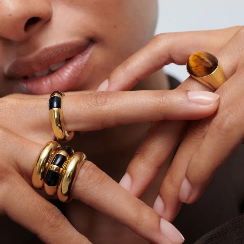 Золотистый, ониксово-черный, переработанное серебро, серебро с покрытием из переработанного 18-каратного золота, плоский профиль внутри и скругленный снаружи, украшение из поделочных камней, полоски, глянцевая фактура и тисненый логотип внутри. На все украшения Monica Vinader, изготовленные вручную, действует гарантия в течение пяти лет с момента покупки. Узнать больше о том, какие товары получают отметку «Ответственный выбор», можно из материала «Как мы оцениваем экологичность и этичность».