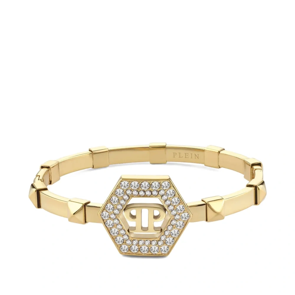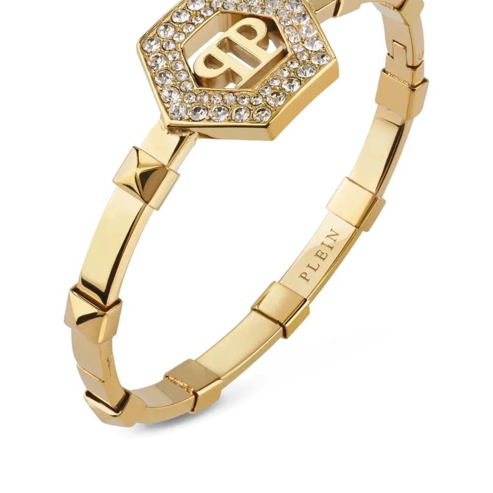 Золотой браслет с кристаллами и логотипом