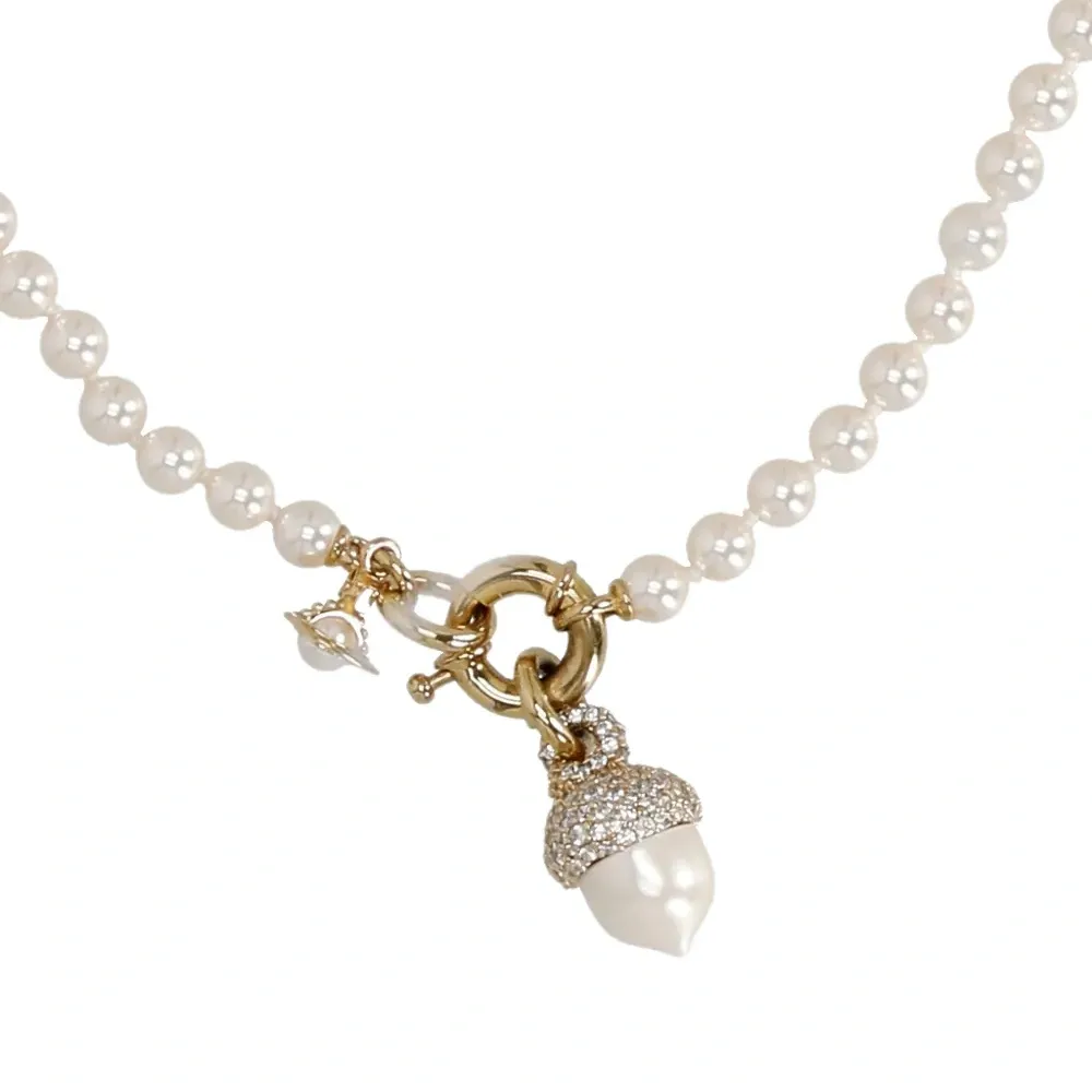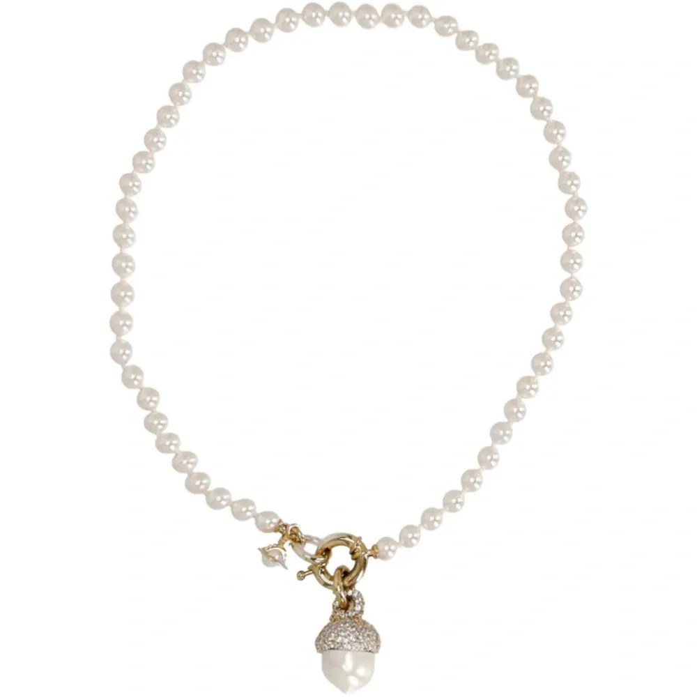 белая бусинчатая цепочка, украшение кристаллами, детали в виде подвесок, застежка-карабин