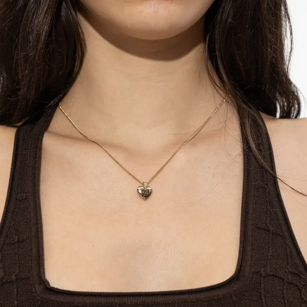 золотистая цепочка с подвеской с логотипом, застежкой-карабином и регулируемой длиной