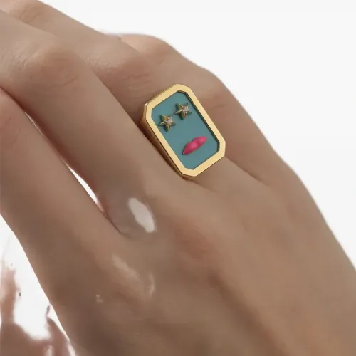 бирюзовый с звездным мотивом, розовые детали, прямоугольная деталь золотистого оттенка. При повседневном использовании и воздействии внешних факторов блеск драгоценных камней и золотых поверхностей может уменьшиться. Для ухода используйте специальные неабразивные средства, специально предназначенные для чистки ювелирных изделий.