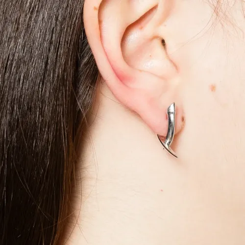 Серьга из серебра 925 пробы с перекрёстным дизайном и полированной отделкой. Это одиночная серьга для левого уха. Обычное ежедневное использование и воздействие внешних факторов могут снизить блеск драгоценных камней и золотых поверхностей. Для ухода используйте специальные неабразивные средства, предназначенные для чистки украшений.