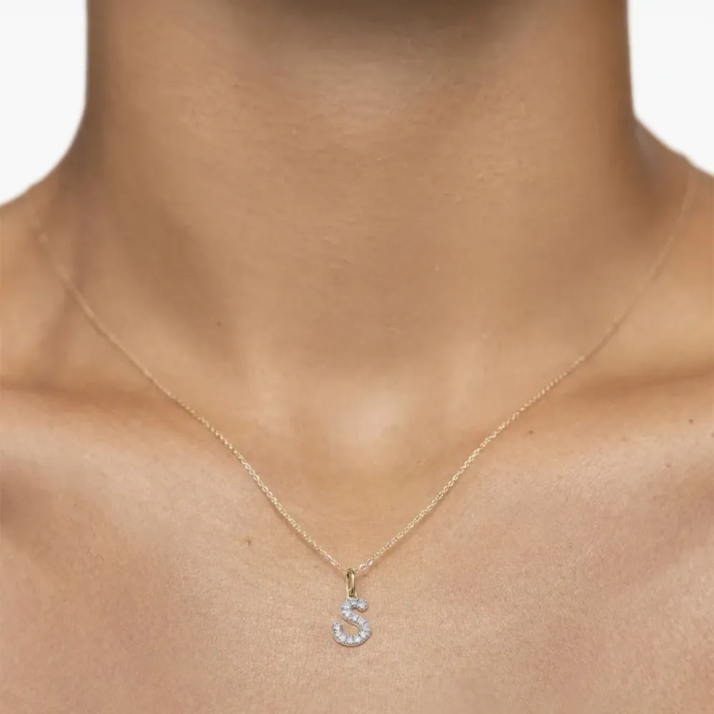 Подвеска в форме буквы S из желтого золота с бриллиантами
