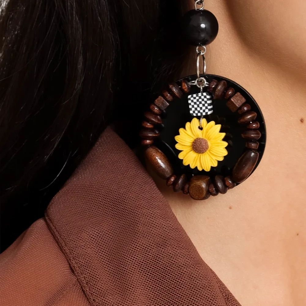 серебристый цвет / разноцветные, детали в виде сердца, детали в виде подсолнуха, детали в виде бусин, свисающий стиль. Эти серьги идут в паре.