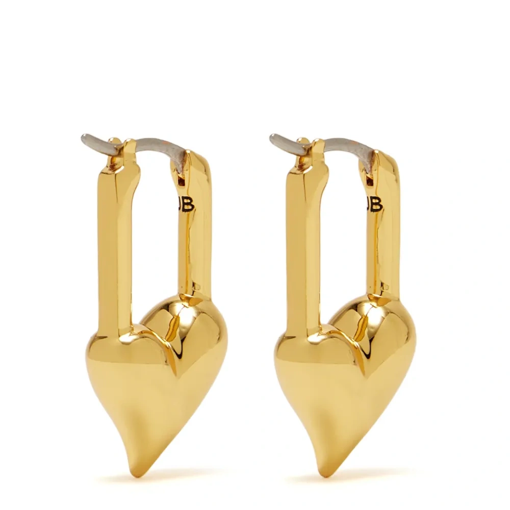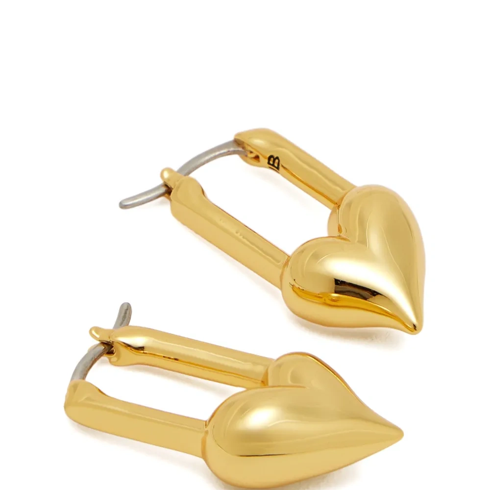 золотистого цвета; дизайн в виде подвески; деталь в форме сердца; для проколотых ушей; застёжка-шарнир