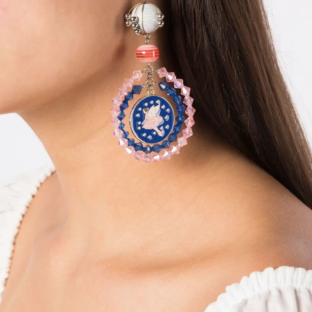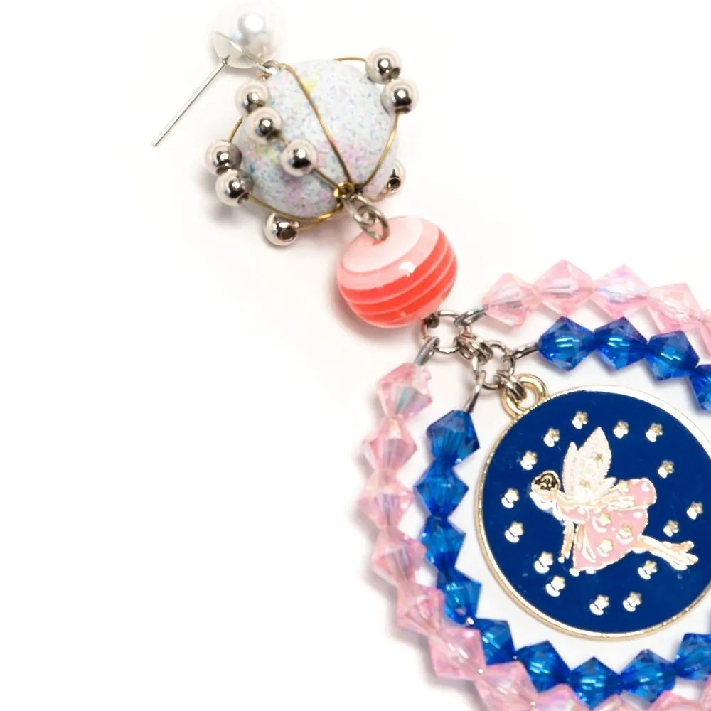 Синий, розовый, искусственный жемчуг, детали из бисера, серьги-подвески и для проколотых ушей. В комплект входят две серьги.