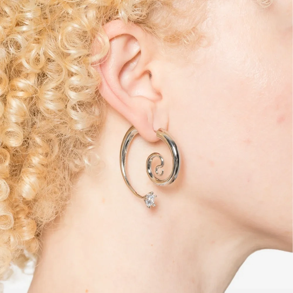 Серьги серебристого цвета с закрученным дизайном и закрепкой типа «коготок». Поставляются в паре.
