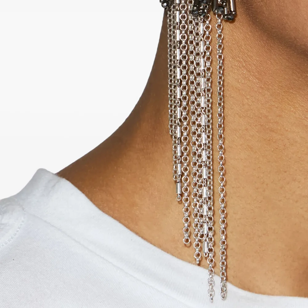 серебристый оттенок декор из бусин деталь в виде цепочки асимметричный дизайн свисающие цепочки Эти серьги поставляются в паре.