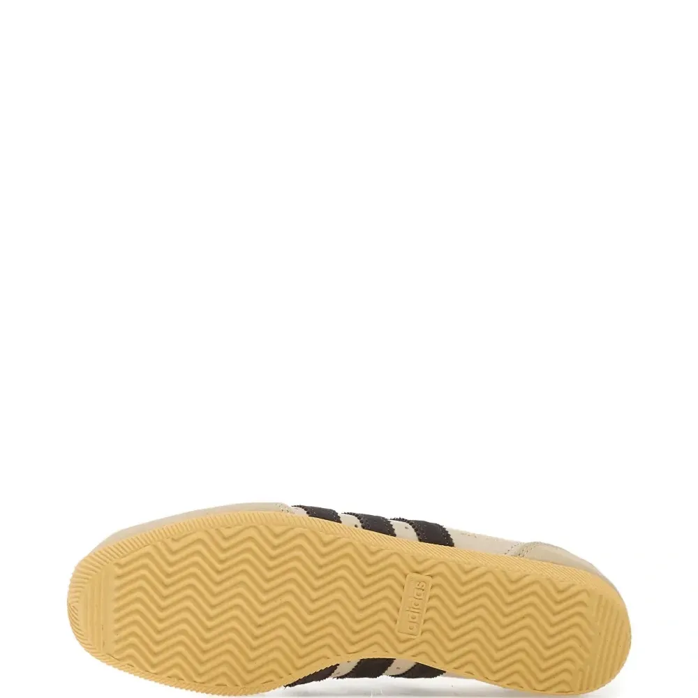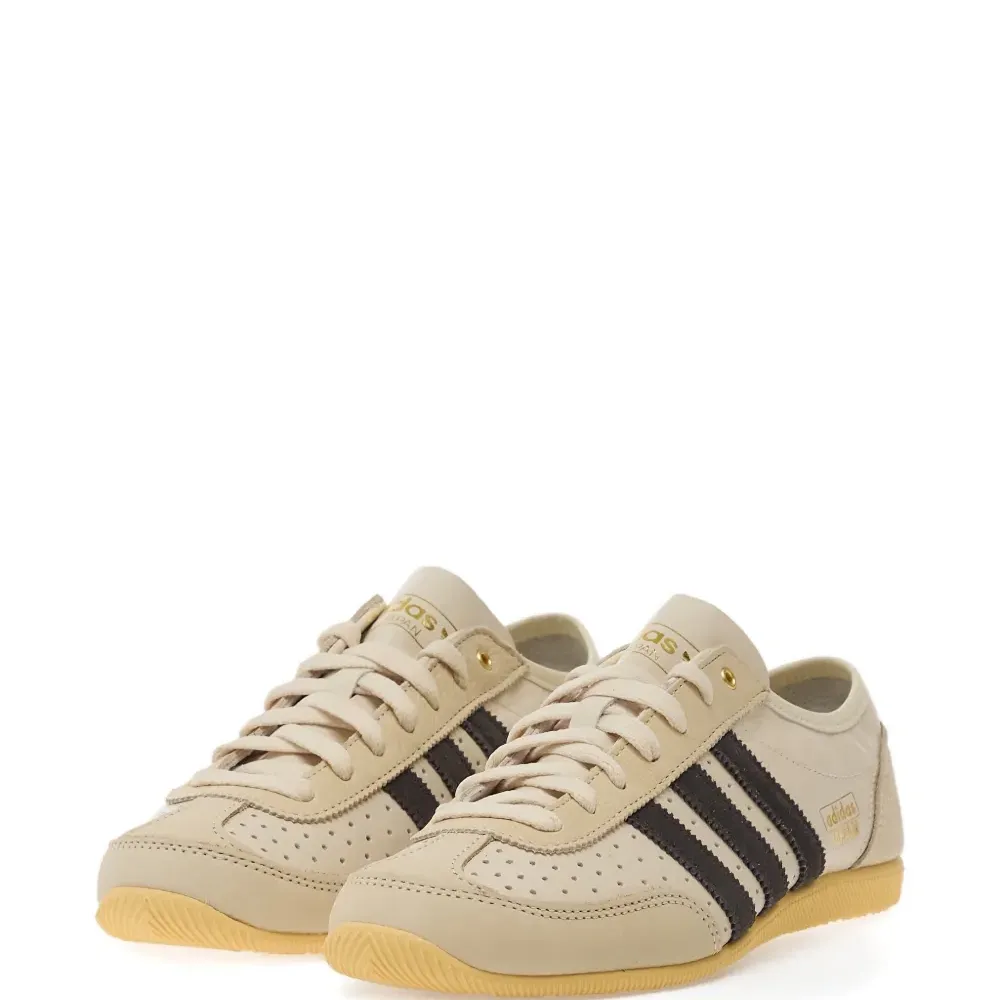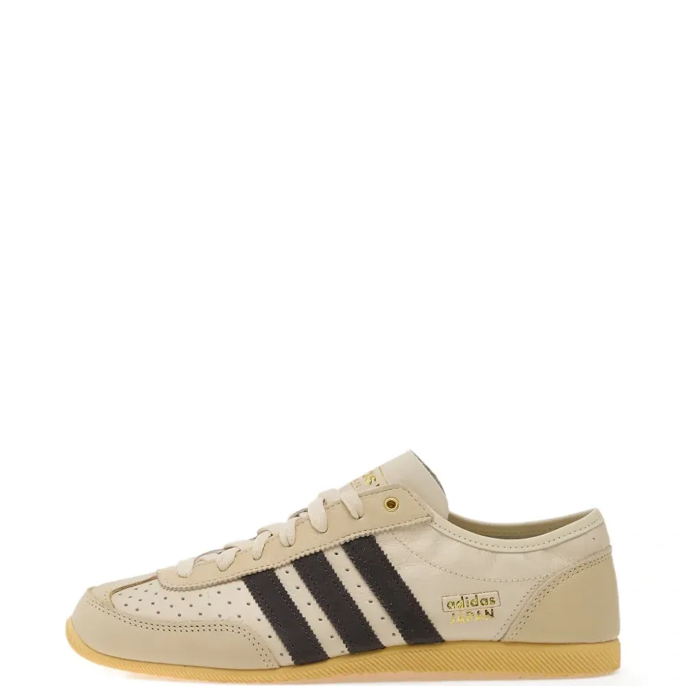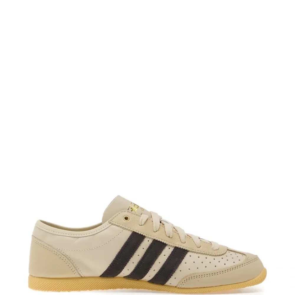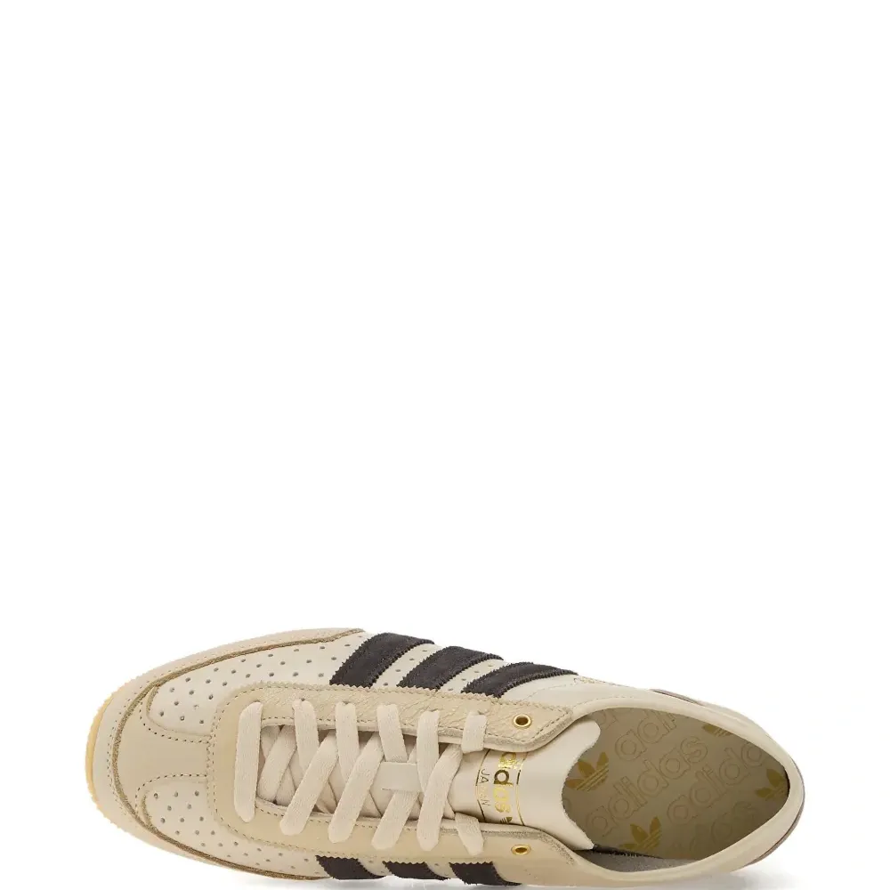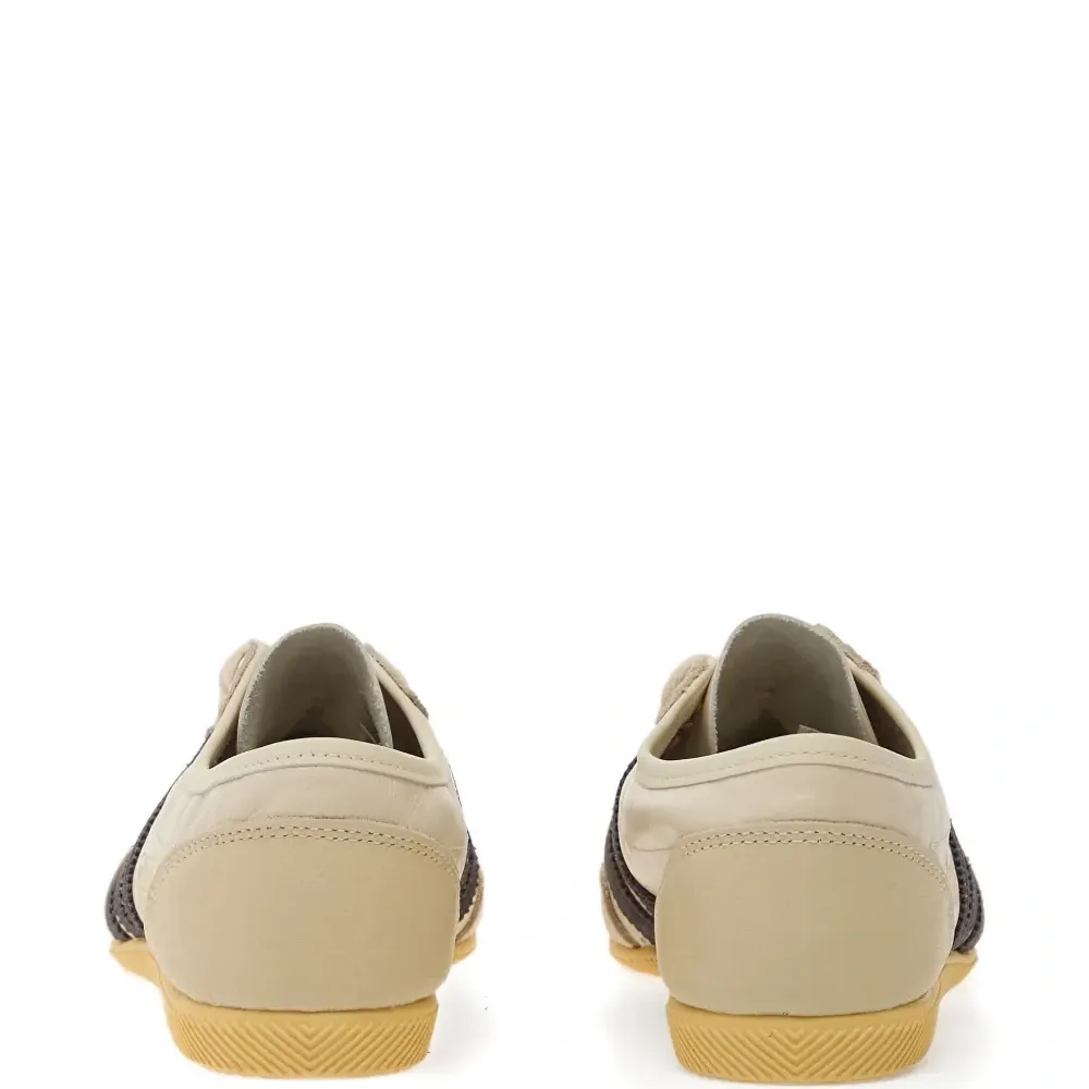 бежевые, перфорированные детали с тремя полосками, шнуровка, круглый носок, плоская подошва