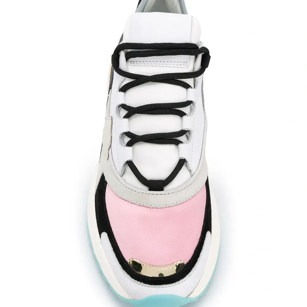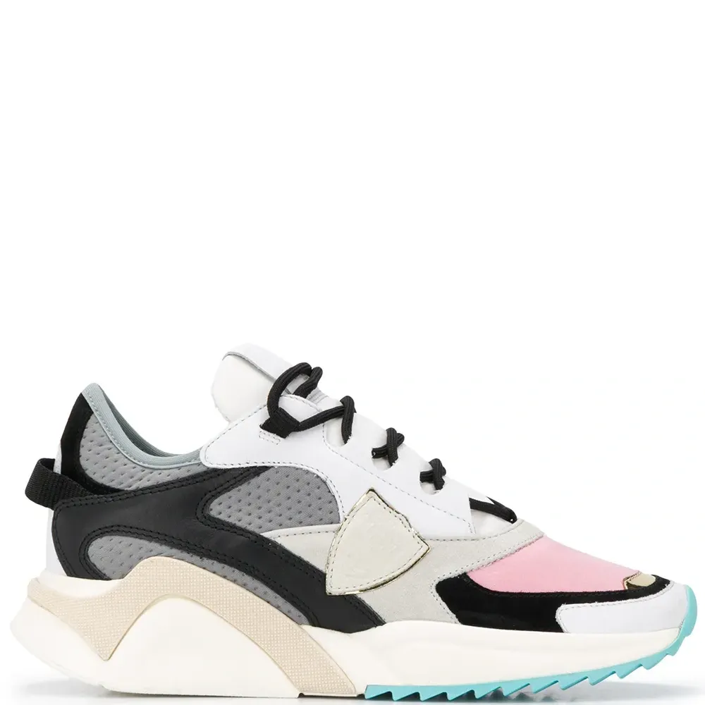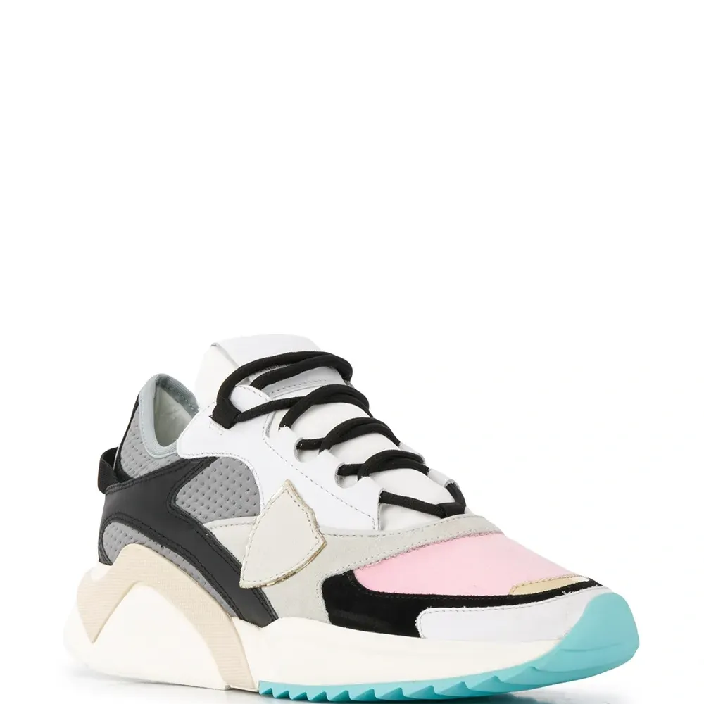 Кроссовки Eze для бега от Philippe Model. Цветной узор, металлический носок, закругленный носок, шнуровка спереди, контрастные панели и ребристая резиновая подошва. Цвет: белый.