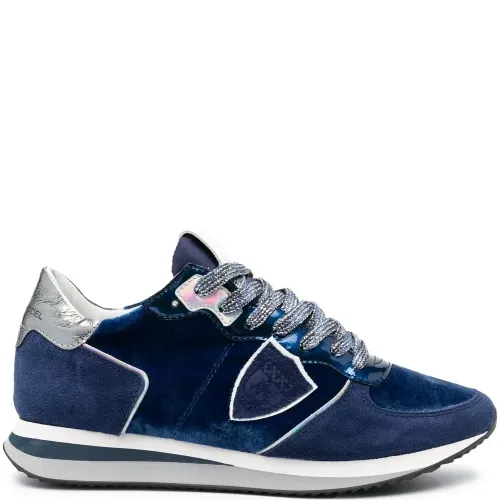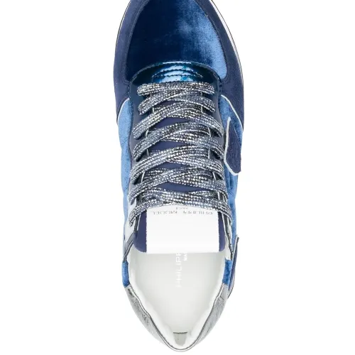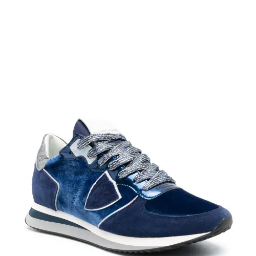 Темно-синий, серебро, замшевые вставки, шнуровка спереди, закругленный носок, контрастный задник и плоская резиновая подошва.