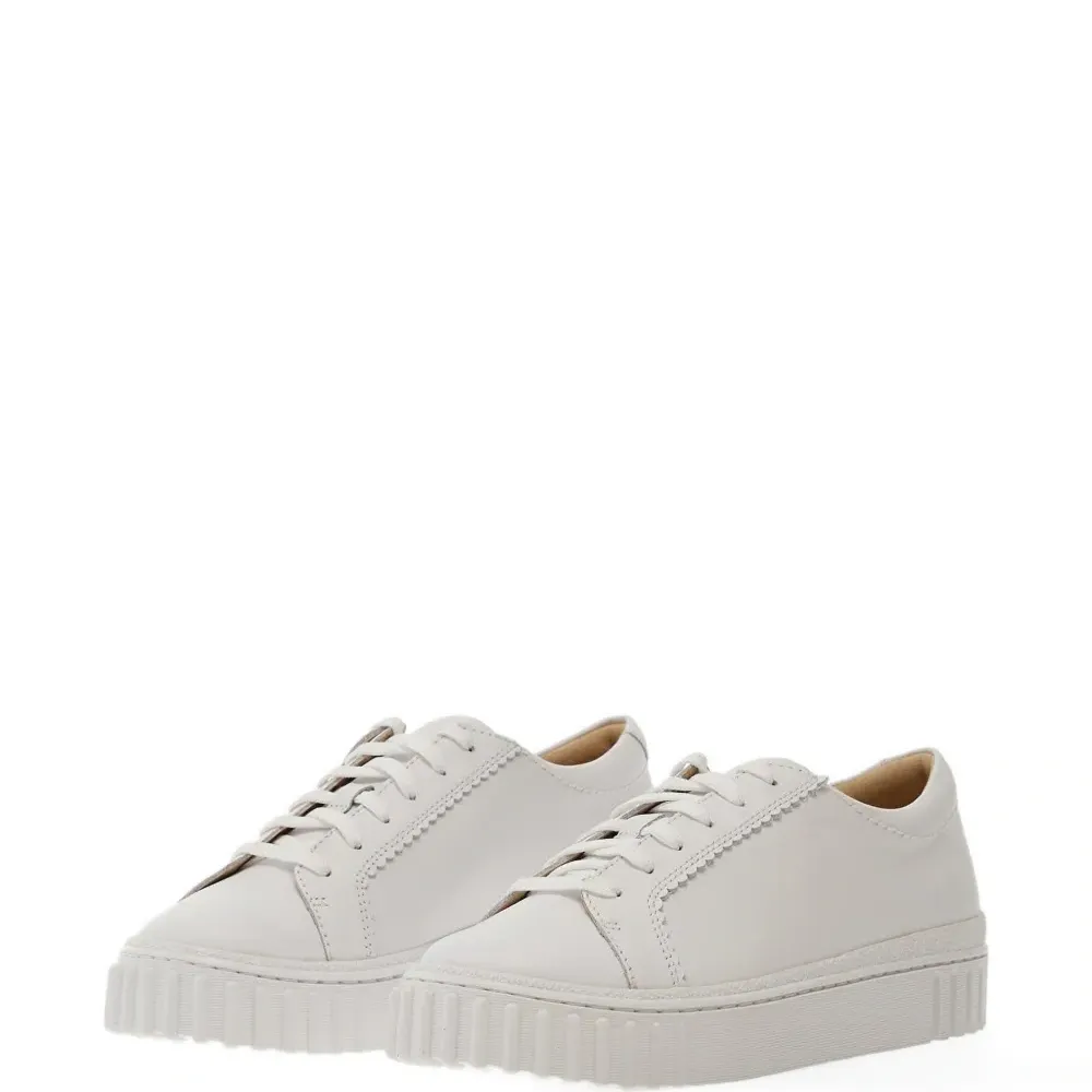 белые шнурованные туфли на платформе с зубчатой подошвой и волнистой отделкой