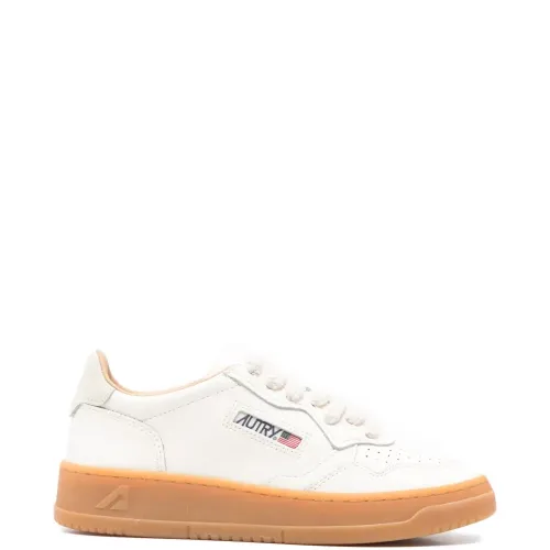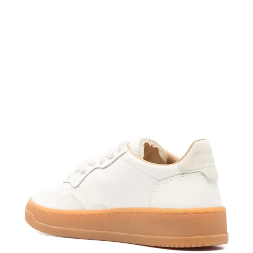 белый цвет, перфорированный дизайн, резиновая подошва, нашивка с логотипом, круглый носок, шнуровка спереди