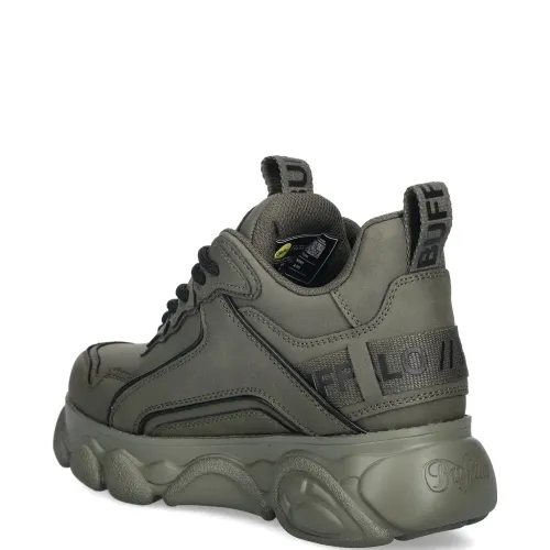 хаки, приподнятый логотип, петелька на пятке, платформенная подошва, шнуровка, рифленая подошва