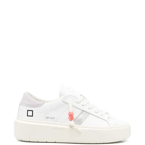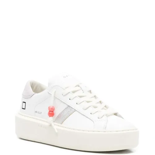 белые кроссовки с полосатым декором, шнуровкой, круглым носком и платформой