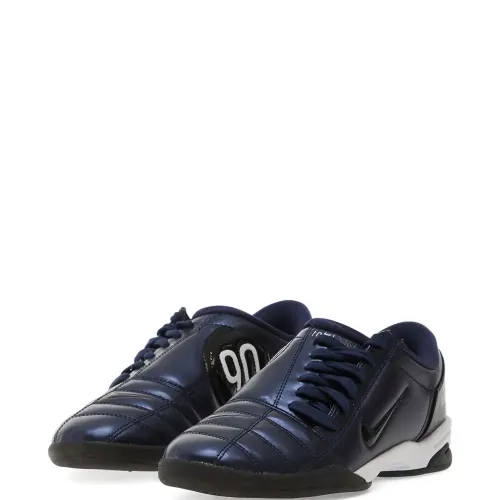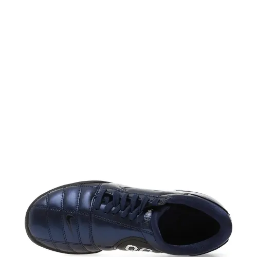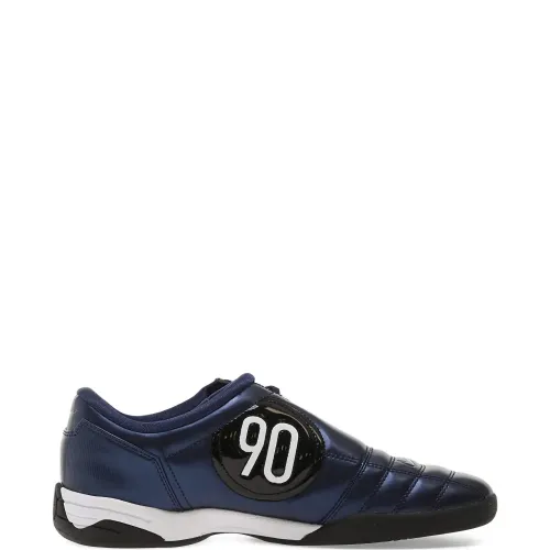 синий цвет, стеганый узор, шнуровка, логотип, круглый носок, резиновая подошва