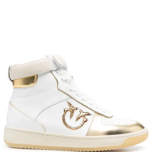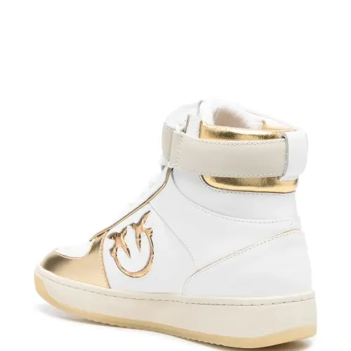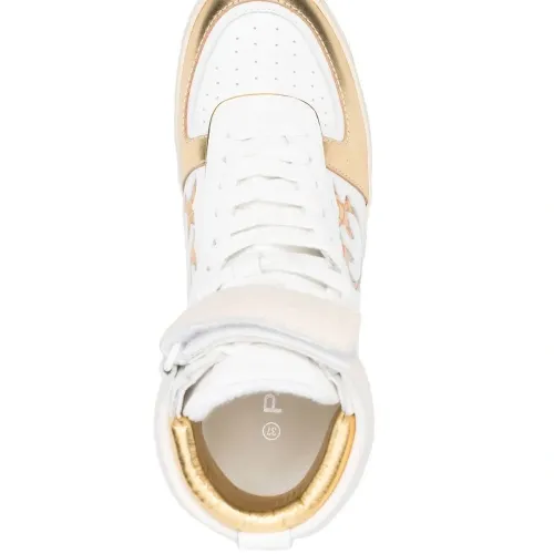 Белый, золотистый, телячья кожа, нашивка с логотипом сбоку, перфорация, закругленный носок, шнуровка спереди и плоская резиновая подошва.