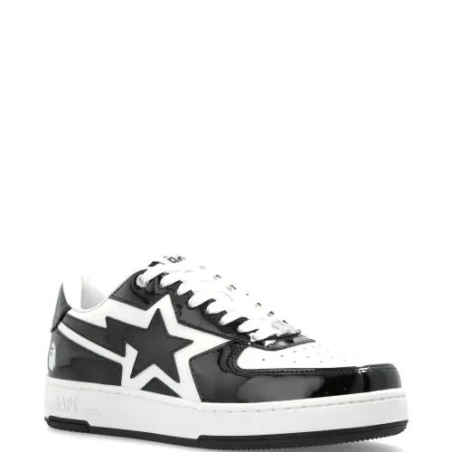 черные кожаные кроссовки со звездой, шнуровкой, логотипом и перфорацией на мысе