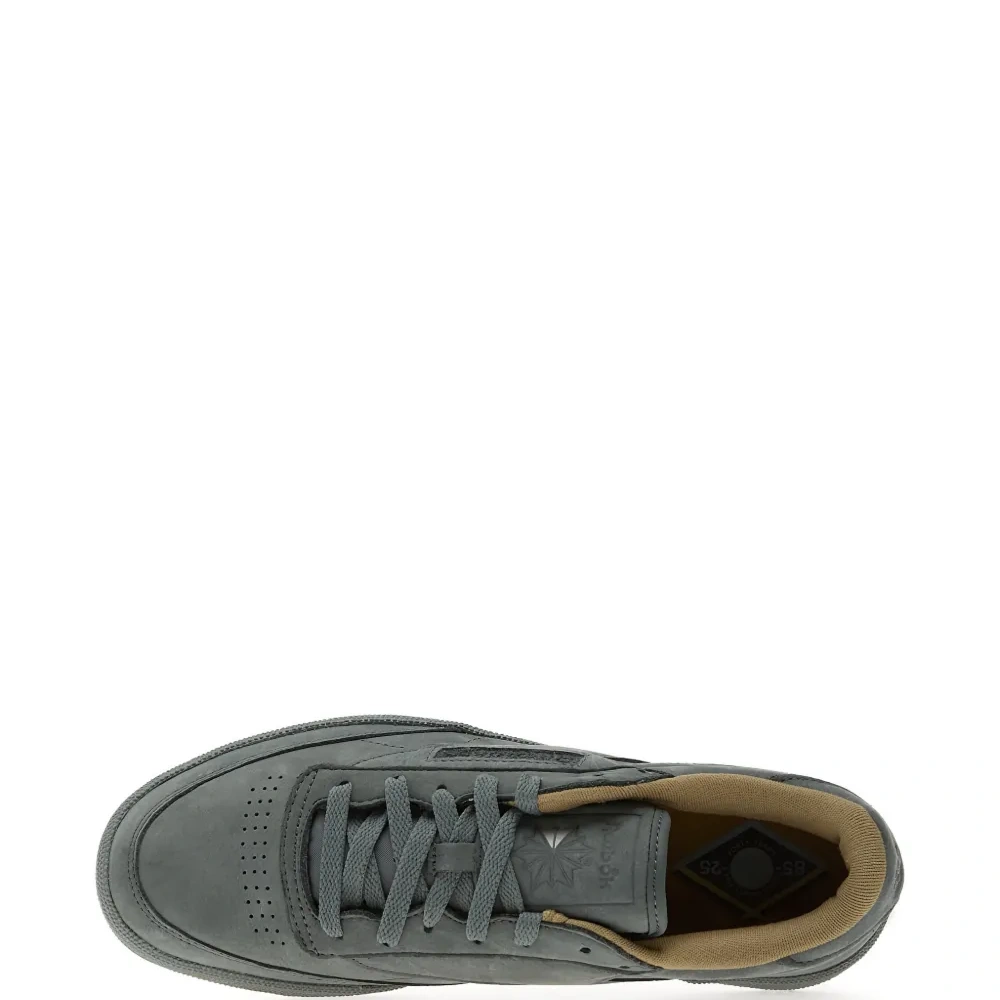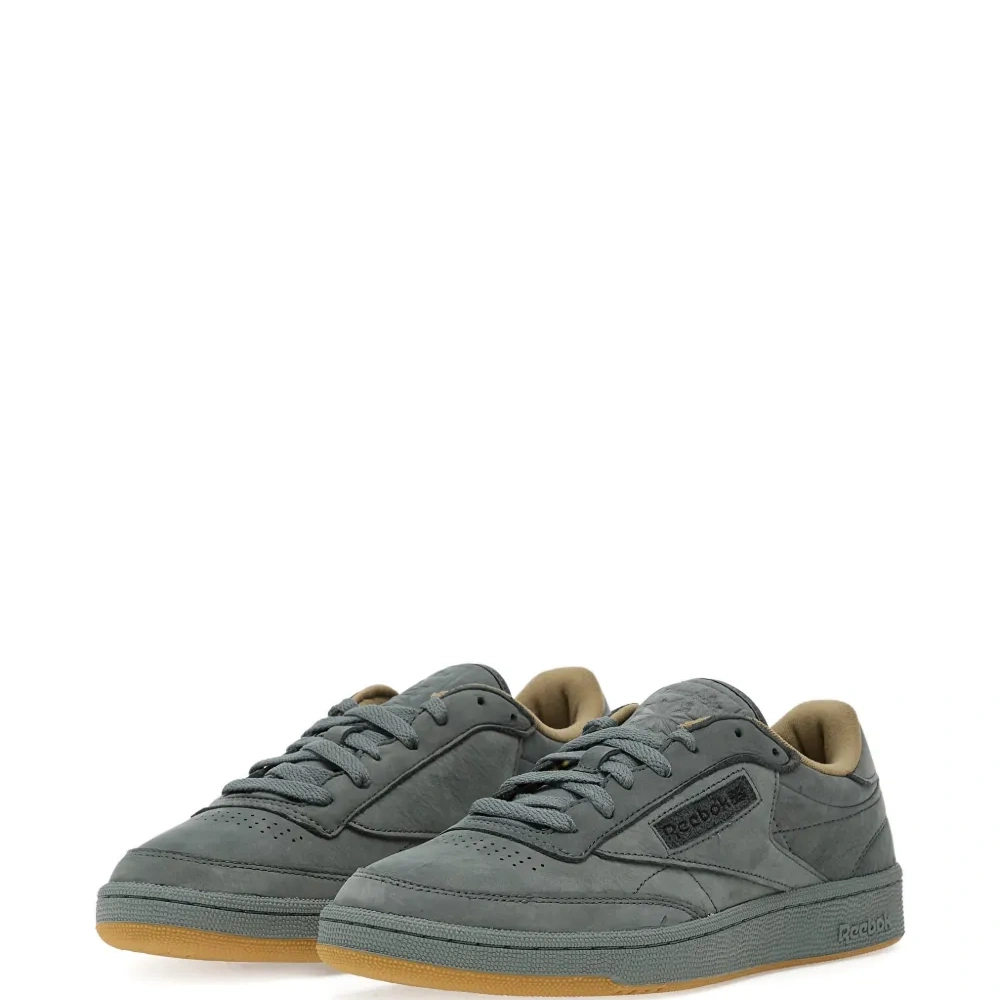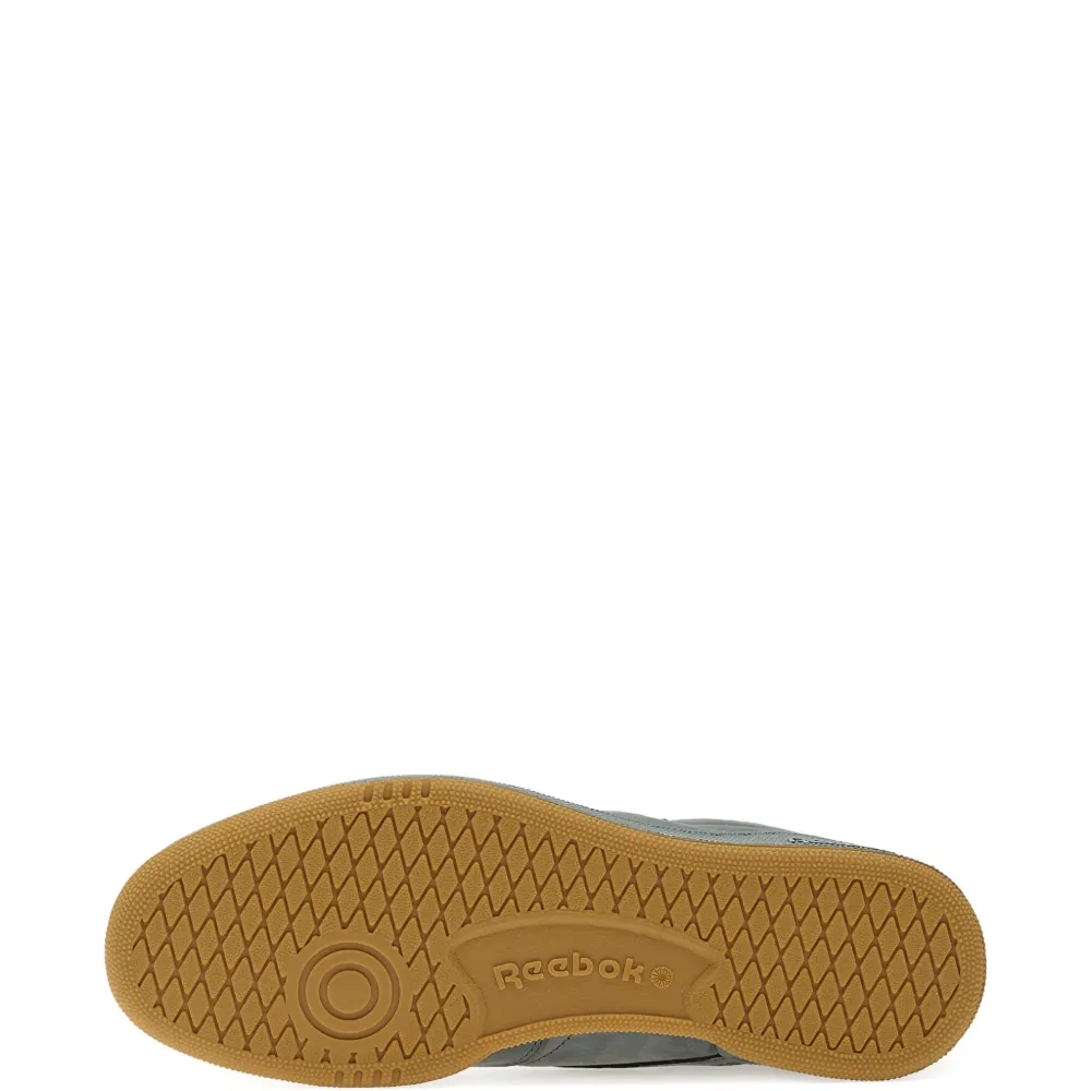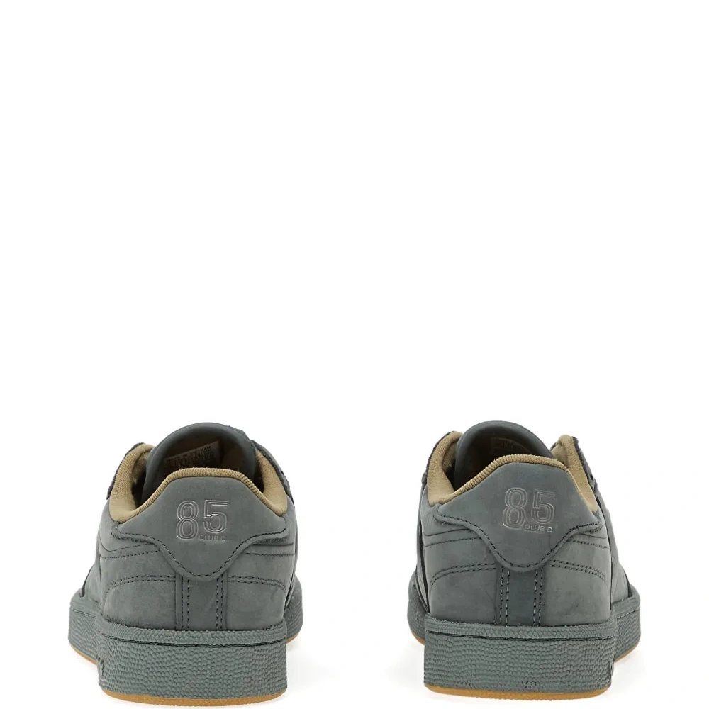 серая резиновая подошва, шнуровка, круглый носок, логотип, перфорированные детали