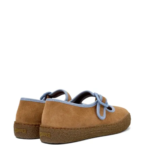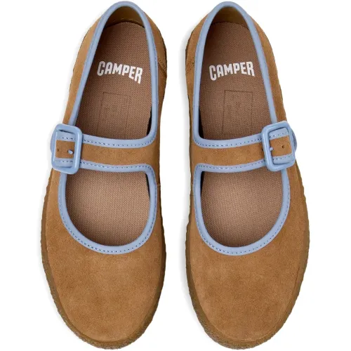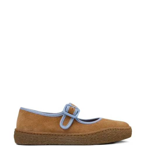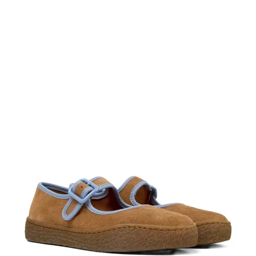 коричневый ремешок с пряжкой, закруглённый носок, контрастная отделка, текстурированная подошва