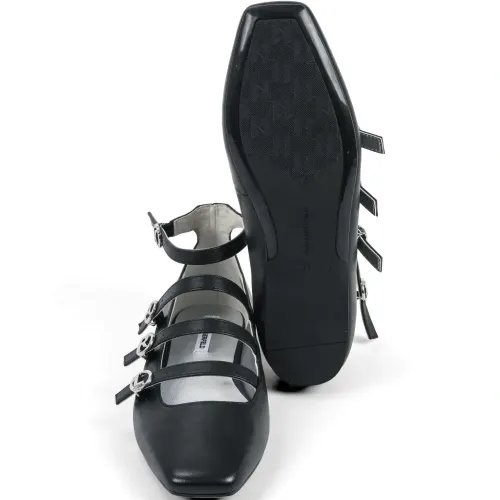 черные ремешки, застежка-пряжка, квадратный носок, ремешок на щиколотке, фурнитура серебристого оттенка