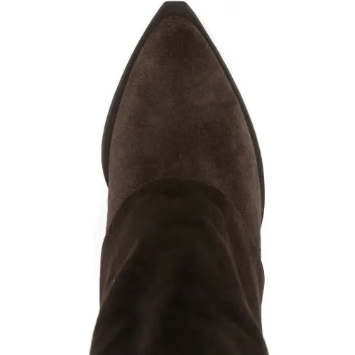 темно-коричневый замша заостренный носок модель без застежек фирменная стелька