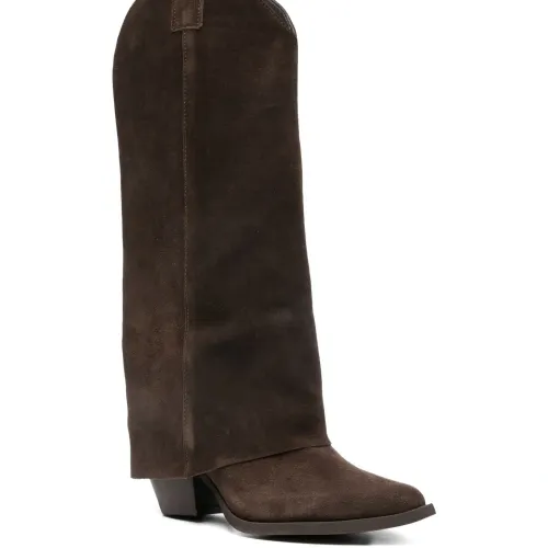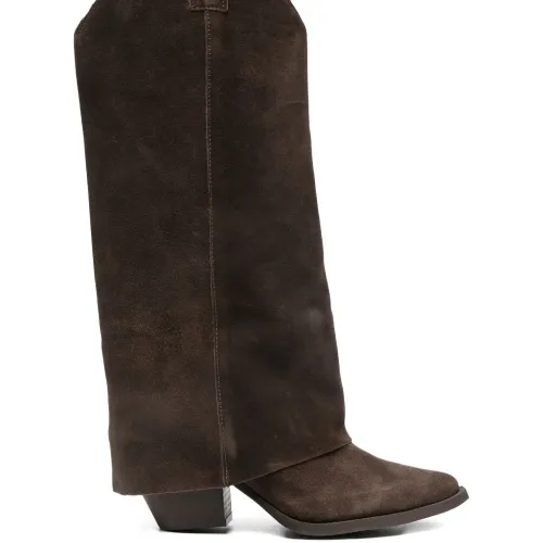 Замшевые сапоги до колена на каблуке 80 мм