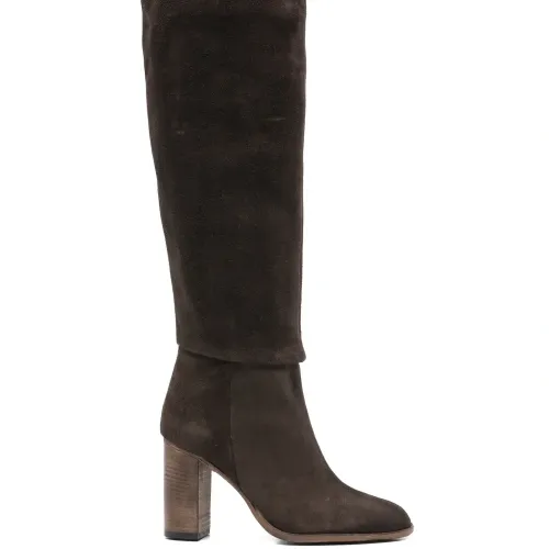 замшевые сапоги на блочном каблуке высотой 85 мм