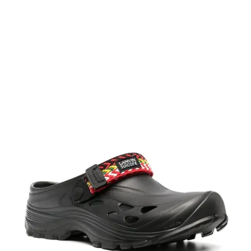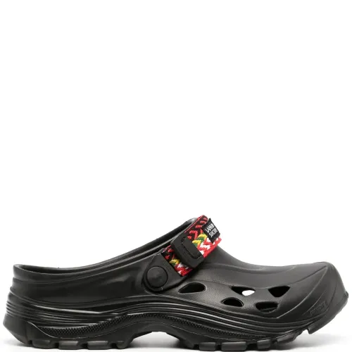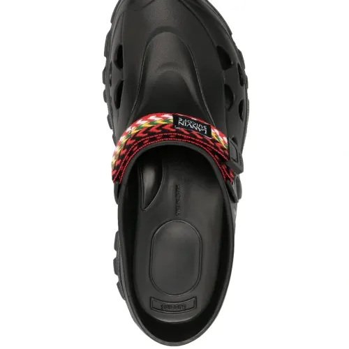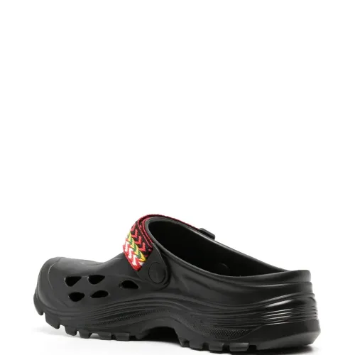 Черный/разноцветный, плетеный ремень, нашивка с логотипом спереди, вырезные детали, закругленный носок, модель без застежки и массивная резиновая подошва.