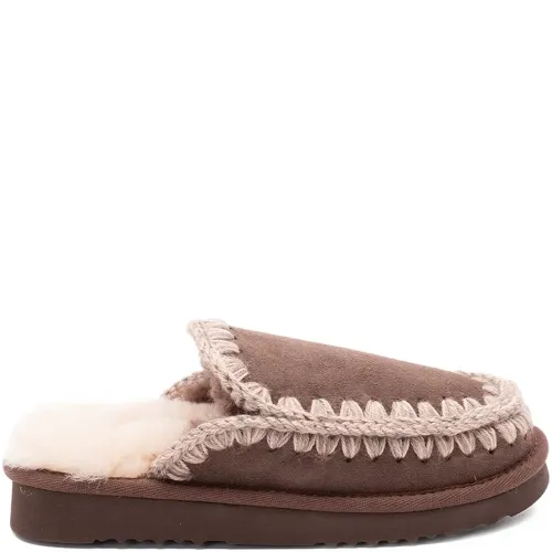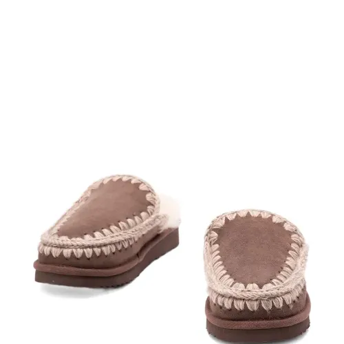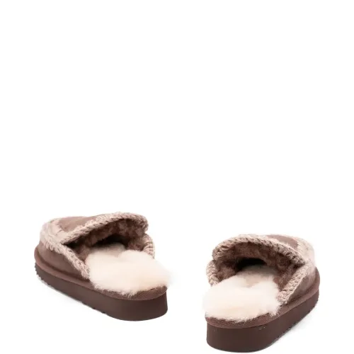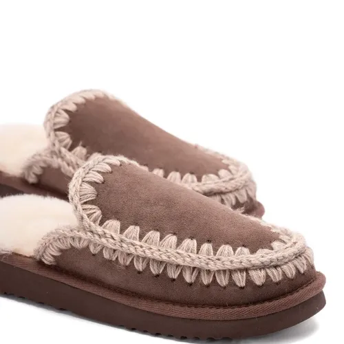 коричневый овчина отделка крючком модель без застёжки плоская подошва скруглённый носок