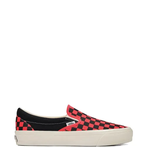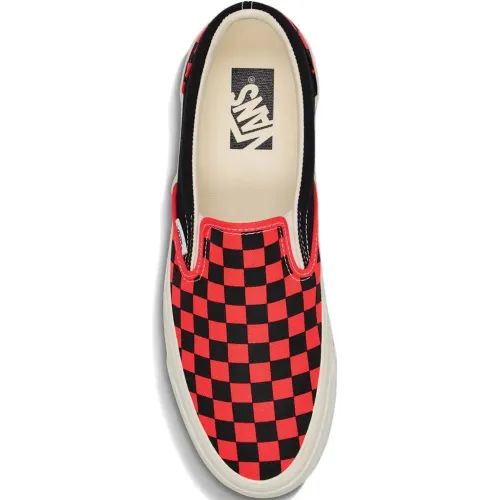 красно-черные слипоны в клетку, круглый носок, фирменная стелька